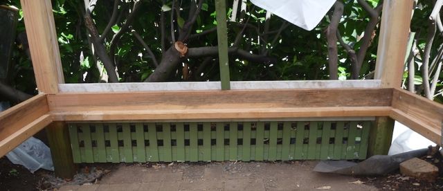 I seem to decide I won’t post any more construction photos until the reveal, and then Woody sends me some more that are interesting. I thought you might like to see how he is constructing this lattice…remember these?