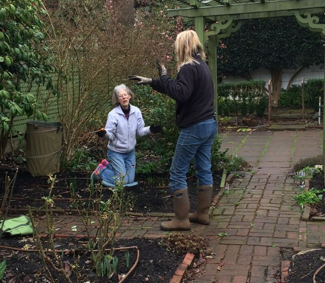 Taking advantage of the good weather, the crew arrived early to spread compost and “attack the invasives”. By the time I got there at 10 they were nearly done…